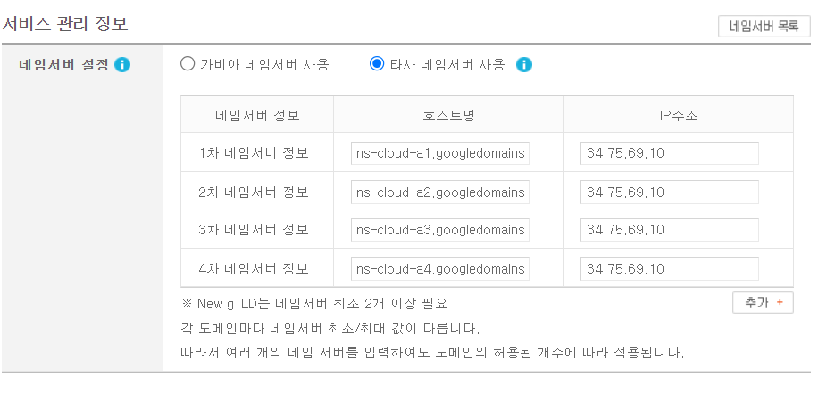 캡처 이미지와 다르게 나는 그냥 가비아 네임서버를 사용했다.