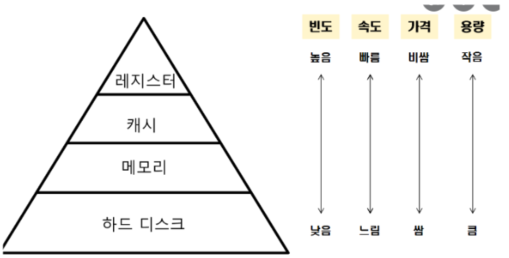 캐시 히트와 캐시 미스. 캐시의 크기는 작지만 공간적 지역성과 시간적 지역성을 이용해서 효율적으로 활용.