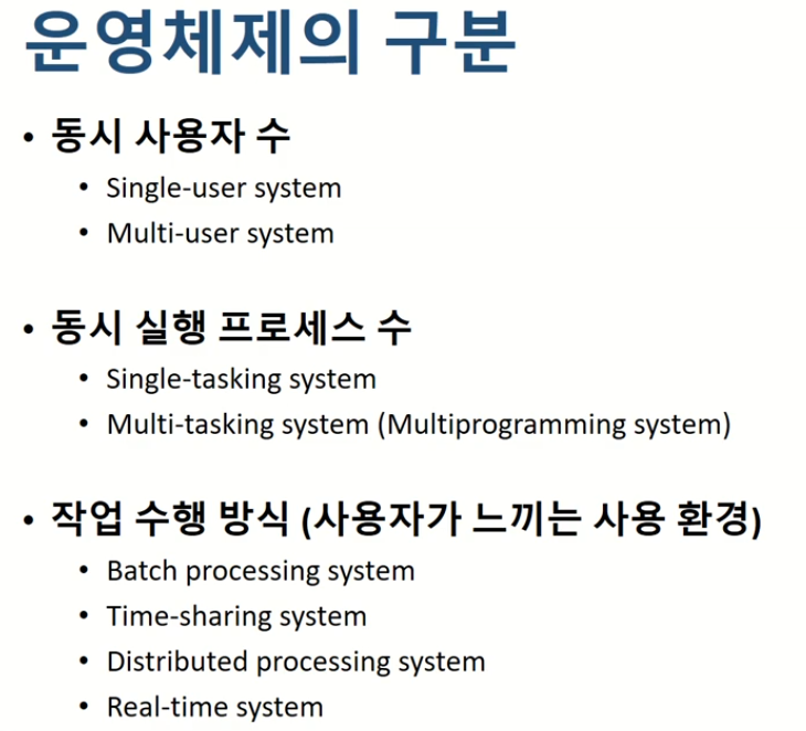 시스템 관점에서는 하드웨어의 컴퓨터 시스템 자원을 효율적으로 관리하는 시스템이다.