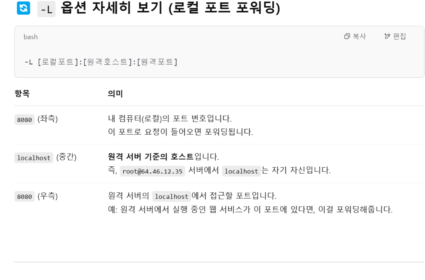 8080:localhost:8080 은 포트포워딩 명령어이다.